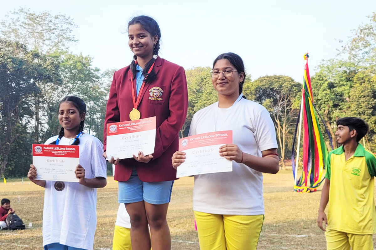 The Annual Sports Day of Father LeBlond School was successfully held on 20th December 2025, marking a day filled with energy, enthusiasm, sportsmanship, and healthy competition. The event was honored by the presence of Chief Guest Brigadier P.C. Roy, accompanied by his wife, and Guest of Honour Ms. Swati Mandal, whose presence greatly inspired the students and staff.